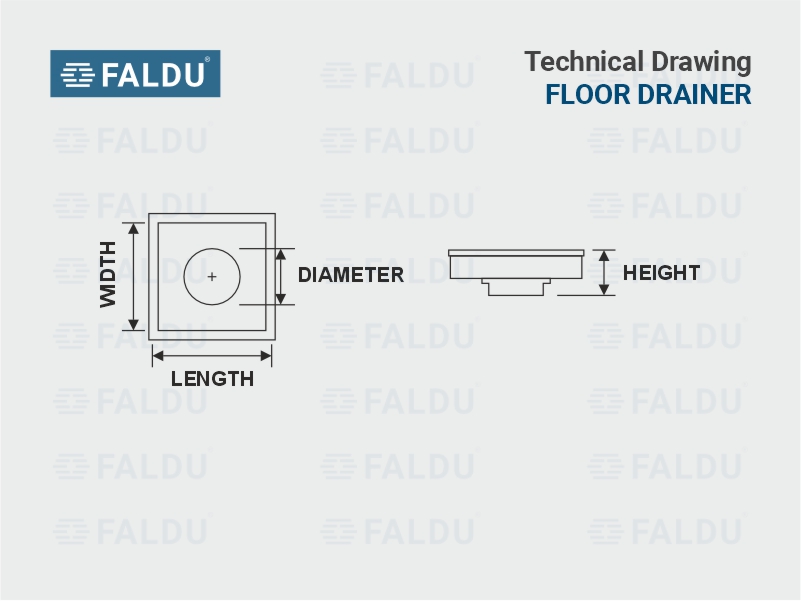 Technical Drawing of Floor Drains & Gratings - FALDU Brand